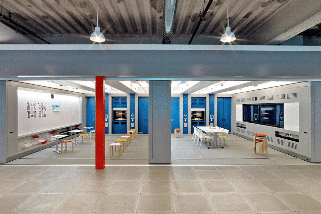 As flex spaces change, it can be difficult to effectively store and move all the materials and auditory and visual aids for high accessibility. One of the easiest and most efficient ways to do this is by implementing movable walls into the classroom. Movable walls can feature the following elements: