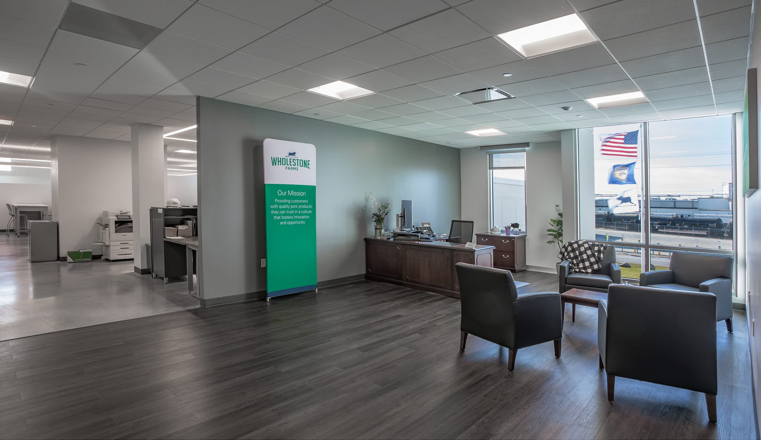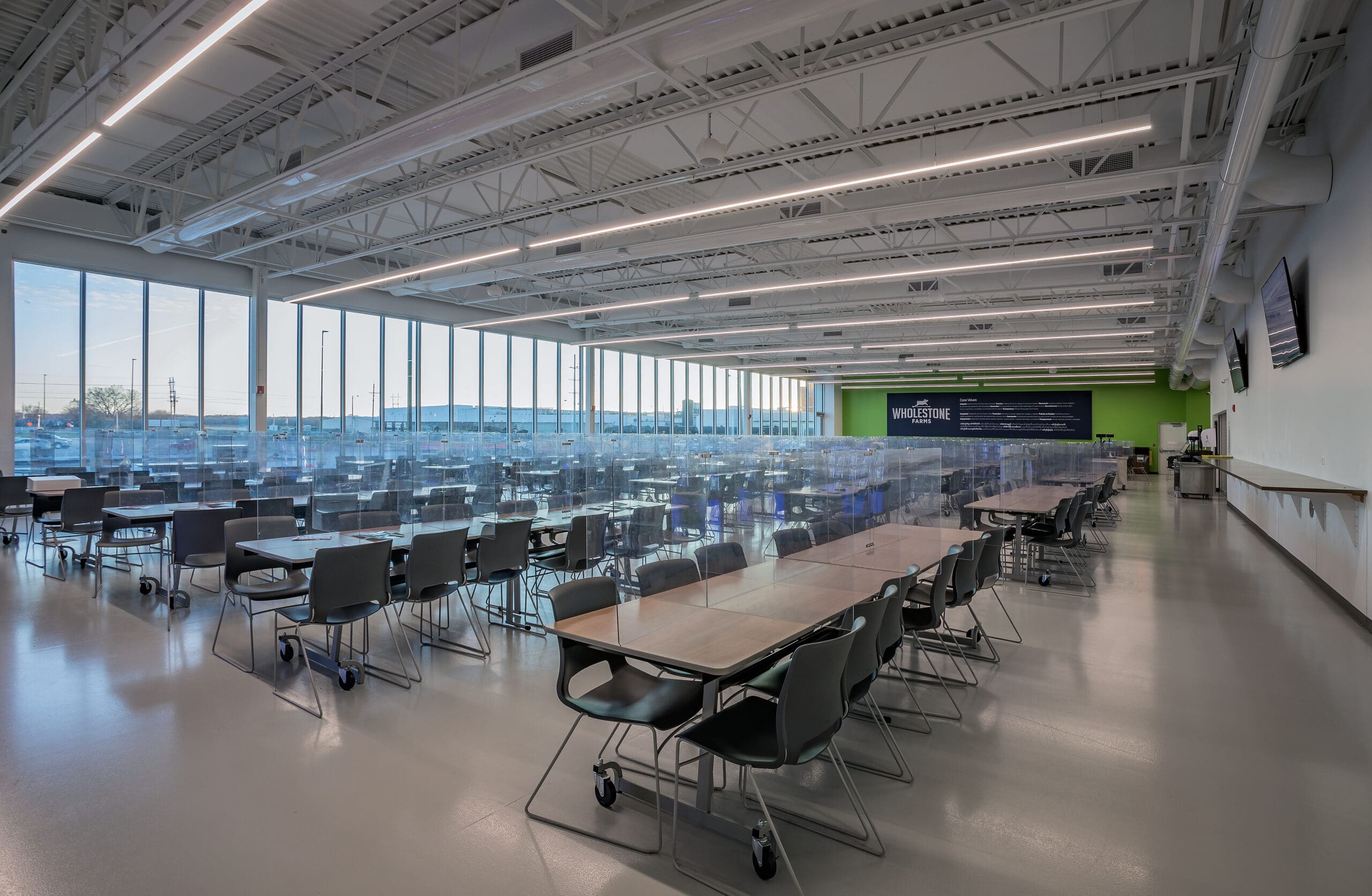 Wholestone Farms bought the Hormel meat packing plant back in 2018 and decided to embark on a $200 million 1.5 year-long expansion plan. This two-phased renovation included a 75,000 sq ft upgrade to the administrative and cafeteria area. The first phase of the project was to gut the administrative offices and create additional space to maximize efficiency. This included an open concept cafeteria and a modernized locker room space. The second phase involved creating a state-of-the-art production floor, with better working environments including more space and natural light for the workers. The challenge? Keep the entire meat packing plant open and running during construction.