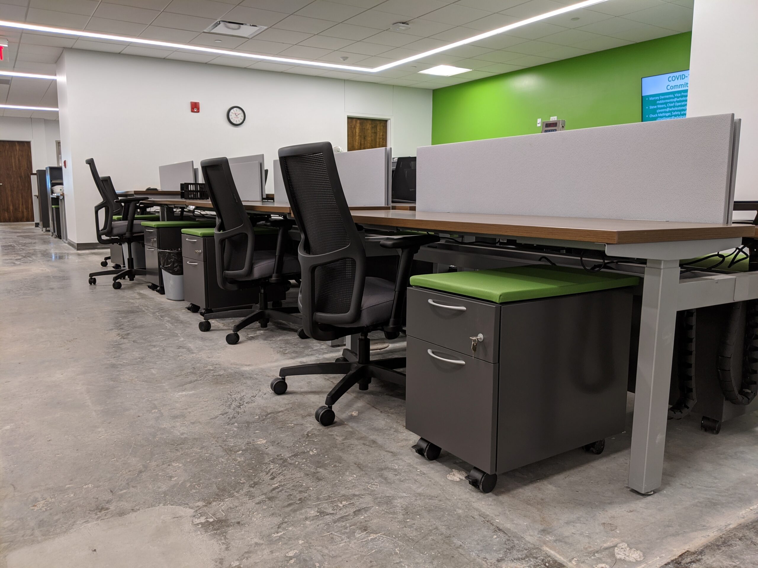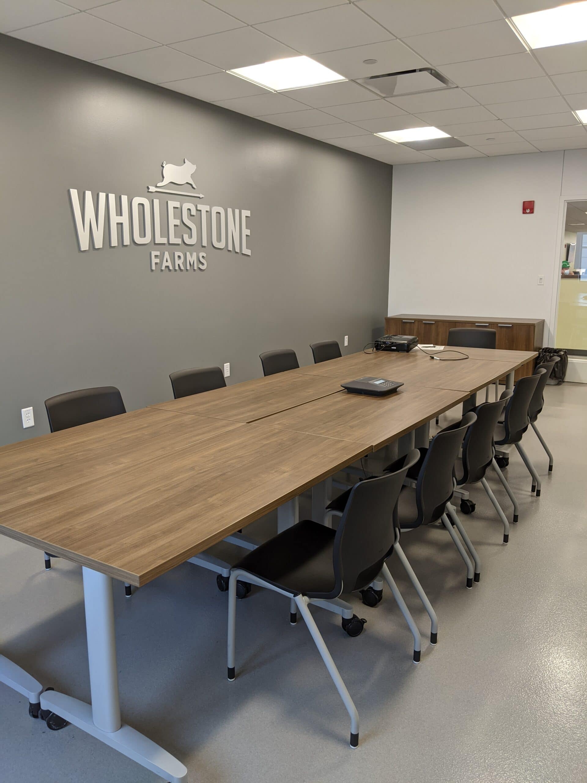 This project introduced a new way of doing business to Midwest Storage Solutions. Instead of installing furniture after the construction — furniture was done in tandem with construction. This unique and innovative process called for more careful planning and execution. Not only was the installation a new process but the layout and branding throughout the Wholestone Farms project was not the typical ‘old-school’ way they are used to seeing. The floorplan was open to encourage collaboration instead of segmented areas that closed employees off from one another. Additionally, the branding was intertwined throughout the installation to bring a fun and inviting experience for the staff. This new approach in an industrial environment showed the potential of what industrial manufacturing could look like by setting this new standard.