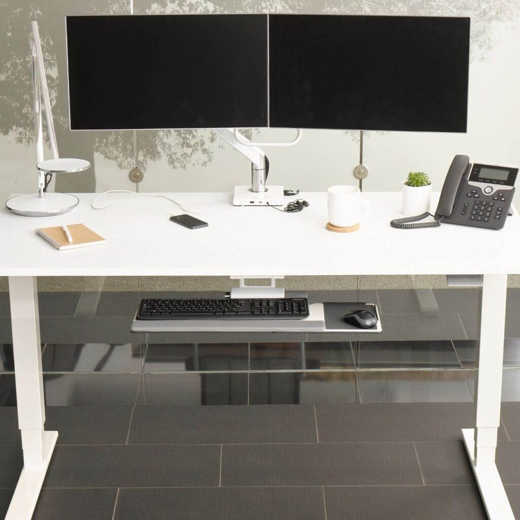 Keeping monitor height slight below eye level can reduce tension in the neck and back. Easily adjust to your needs with a monitor stand